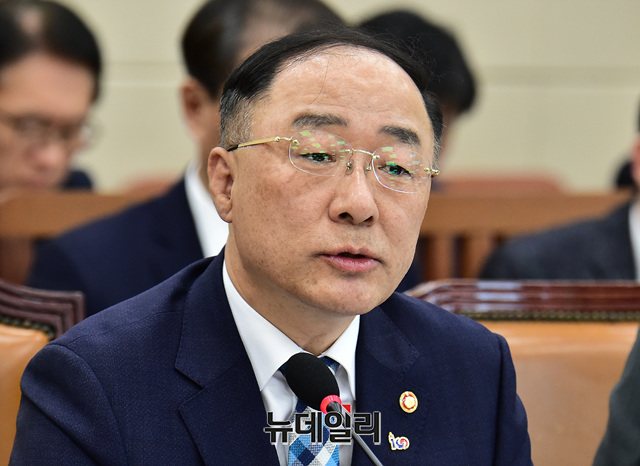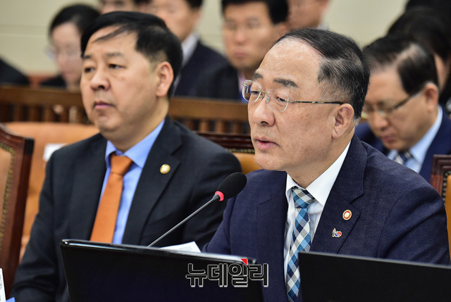홍남기 경제부총리 겸 기획재정부 장관이 29일 오전 국회 기획재정위원회 전체회의에 참석해 의원들의 질문에 답하고 있다.