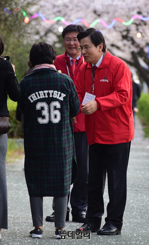 황교안 자유한국당 대표가 30일 오후 경남 창원시 한국폴리텍대한 창원캠퍼스를 찾아 창원·성산 보궐선거에 출마한 강기윤 후보의 지지를 호소하고 있다.