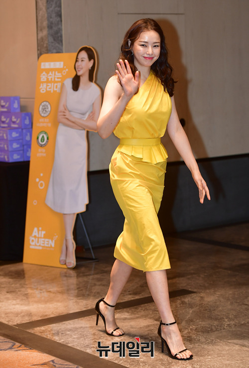 배우 이하늬가 2일 오전 서울 종로구 포시즌 호텔에서 열린 생리대 '에어퀸' 출시 행사에 입장하고 있다.