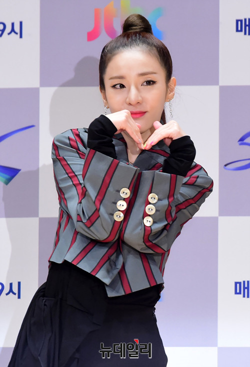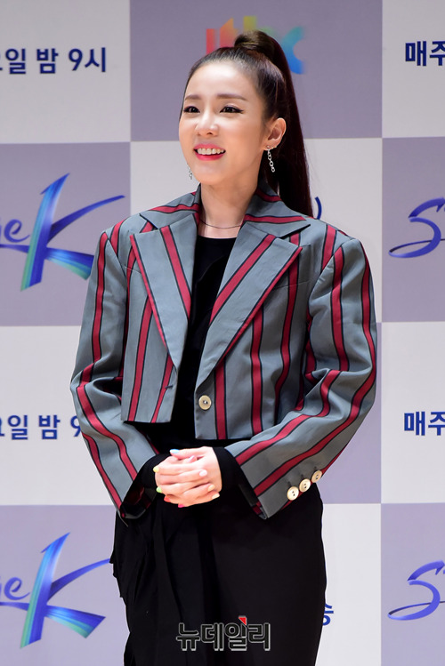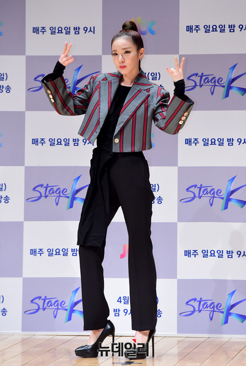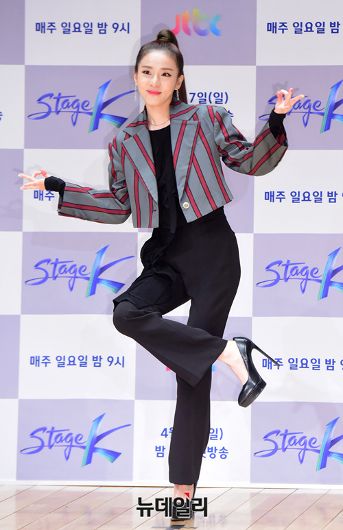 가수 산다라박이 2일 오후 서울 마포구 JTBC사옥에서 열린 '스테이지K' 제작발표회에 참석해 포토타임을 갖고 있다.