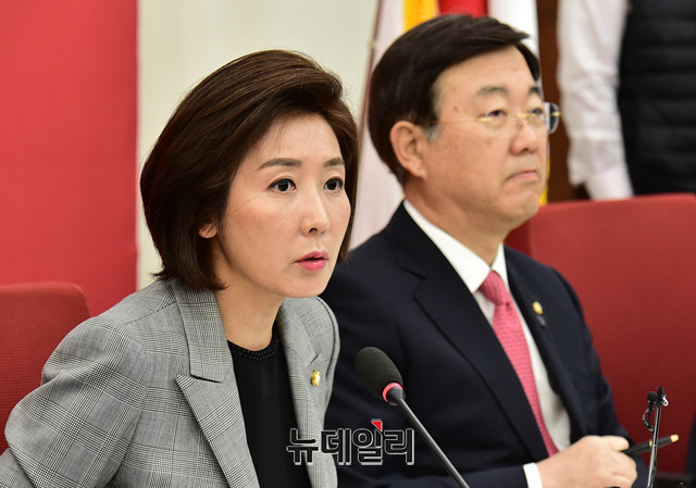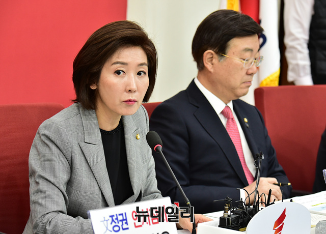 나경원 자유한국당 원내대표가 3일 오전 국회에서 열린 원내대책회의에서 모두발언을 하고 있다.