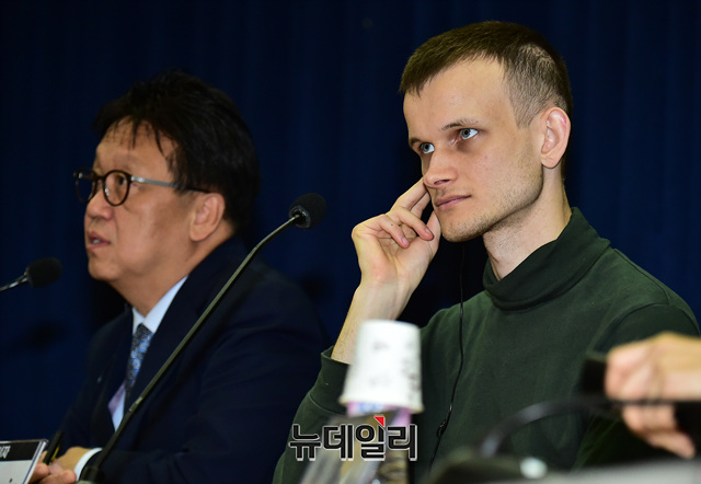 이더리움 창시자 '비탈릭 부테린'이 3일 오전 국회 의원회관에서 열린 '블록체인 기술의 현재와 미래, 이로 인해 변화할 미래 경제' 토론회에 참석해 발언을 듣고 있다.