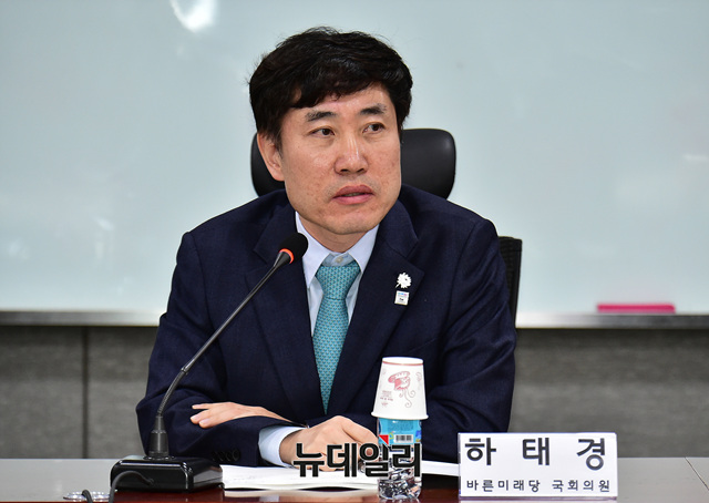하태경 바른미래당 의원이 3일 오전 국회에서 열린 '군 복무, 어떻게 보상할 것인가' 토론회에서 인사말을 하고 있다.