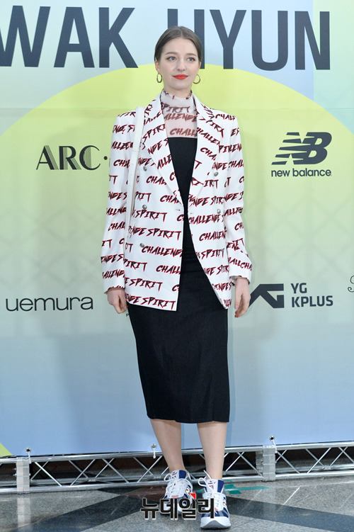 모델 안젤리나 다닐로바가 3일 오후 서울 중구 아크앤북에서 열린 '곽현주 컬렉션 2019 F/W오프쇼'에 참석해 포토타임을 갖고 있다.