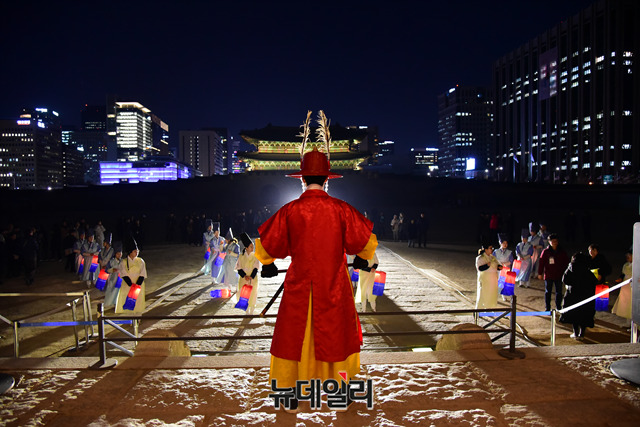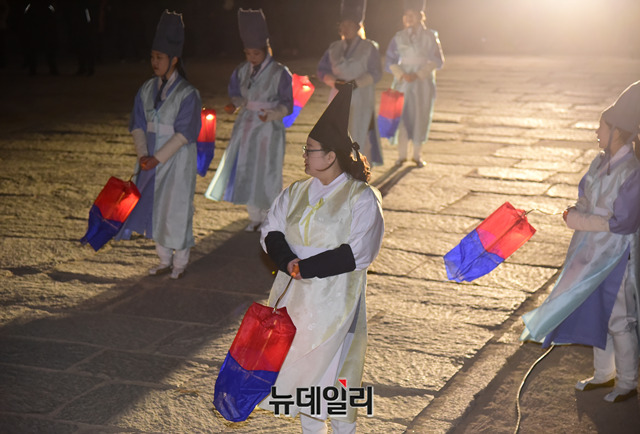 경복궁 야간개장을 앞둔 지난 3일 오후 서울 종로구 홍례문에서 '미리 보는 궁중문화축전-화룡지몽'이 진행됐다.