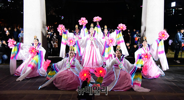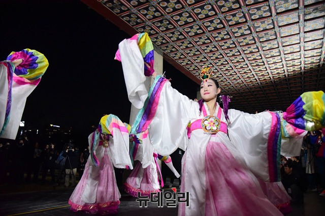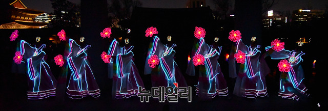 경복궁 야간개장을 앞둔 지난 3일 오후 서울 종로구 홍례문에서 '미리 보는 궁중문화축전-화룡지몽'이 진행됐다.
