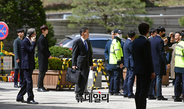 [포토] 재판 참석하는 이명박 전 대통령, 핵심증인 이팔성 출석