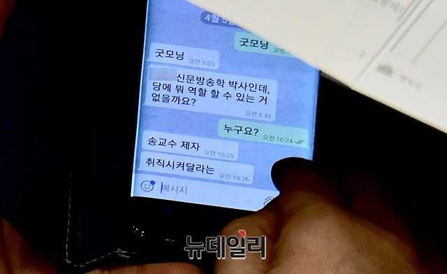 김관영 바른미래당 원내대표가 5일 오전 국회 본회의장에서 인사청탁을 받고 서류를 가져오라고 대답하는 모습이 <뉴데일리> 카메라에 포착됐다.이날 오전 10시20분쯤, 당 최고위원·국회의원 연석회의를 마치고 본회의에 참석한 김 원내대표에게 문자메시지 하나가 날아왔다."S대 신문방송학 박사인데 당에서 뭐 역할할 수 있는 거 없을까요"라는 내용이었다. 김 원내대표는 주변을 잠시 살핀 뒤 "누구요"라고 물었다. 그러자 청탁자는 "송 교수 제자 취직시켜달라는"이라고 대답했다. 그러자 김 원내대표가 "이력서나 자기소개서 가져오세요"라고 말했다.내용은 취업을 부탁하는 청탁문자로 보였다. 확인 결과 바른미래당에서는 현재 공채나 특채 계획이 없다.바른미래당 당 관계자는 "아직 해직된 계약직 직원들의 아픔이 남아 있다"며 "우리는 공채로만 사람을 뽑는다. 그런 식의 자기소개서 접수는 있을 수 없는 일"이라고 잘라 말했다. 이 관계자는 "(취업 청탁이) 성사될지는 모르겠지만, 당직자가 서류를 받았다는 자체로도 문제의 소지가 있어 보인다"고 덧붙였다.'구조조정' 이유로 계약직 대량해고한 바른미래바른미래당은 지난해 12월 바른정당과 국민의당 통합 이후 구조조정을 이유로 계약직 직원들을 계약을 해지하는 방식으로 대량해고했다.김 원내대표는 이날 <뉴데일리>와 통화에서 "평소에 아는 분이 그렇게 연락이 왔기에 이력서조차 받지 않는다고 하면 예의에 어긋난 일이라 판단해 가져오라고 했다"며 "당도 구조조정하는 입장이라 이력서를 받는다고 채용할 수 있는 입장이 아니다"라고 해명했다.이에 대해 지난해 해고된 바른미래당의 전직 당직자는 "김관영 원내대표를 만나면 나 아직 놀고 있다고 꼭 전해달라"며 울분을 토했다.그는 "많은 당직자들이 직장을 잃으면서도 조용하게 당을 떠났던 건 새로운 정치에 대한 믿음이 있었기 때문"이라며 "(원내대표가) 따로 서류를 받았다는 자체로 배신감을 느낀다"고 말했다.