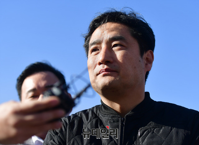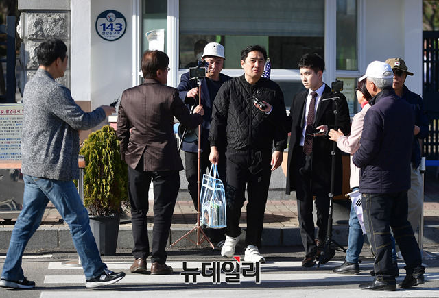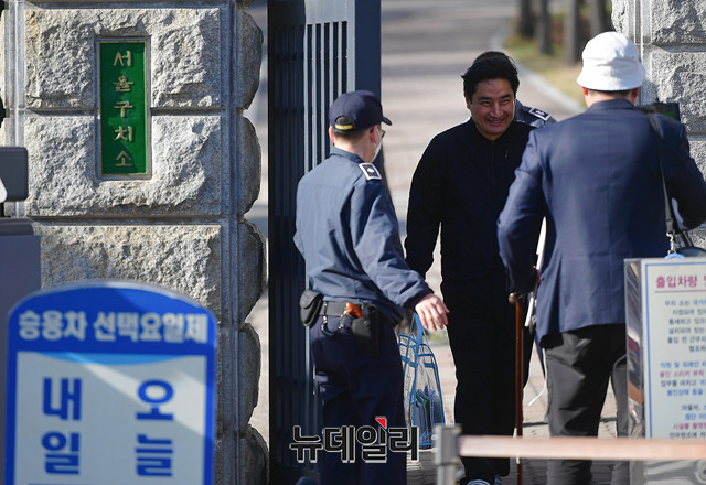 문서위조 혐의로 1심에서 법정구속된 강용석 변호사가 5일 오후 경기 의왕시 서울구치소를 나서고 있다. 앞서 강 변호사는 서울 서초구 중앙지법에서 열린 2심 선고공판에서 무죄를 선고 받았다. 강 변호사는 지난해 10월 1심에서 징역 1년을 선고받고 법정구속된 바 있다. (경기 의왕=정상윤 기자)