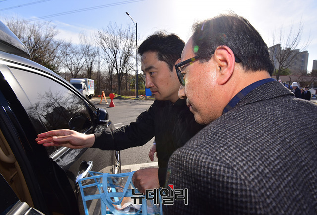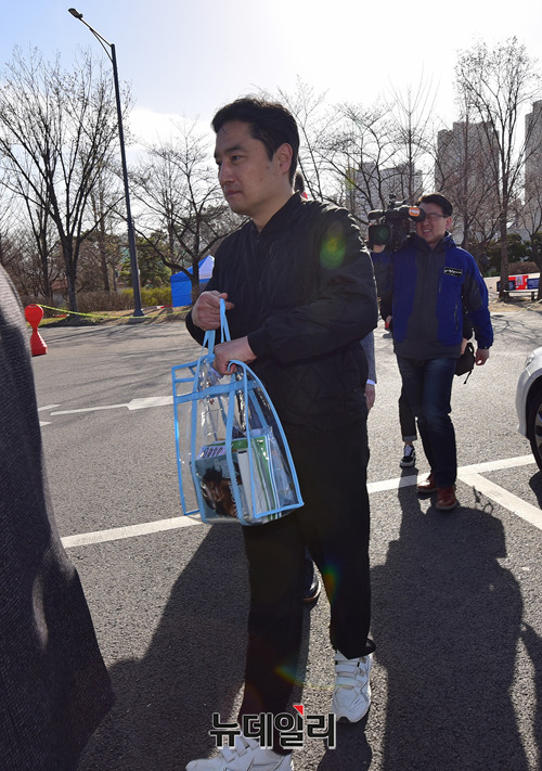 문서위조 혐의로 1심에서 법정구속된 강용석 변호사가 5일 오후 경기 의왕시 서울구치소를 나서 차량에 오르고 있다. 앞서 강 변호사는 서울 서초구 중앙지법에서 열린 2심 선고공판에서 무죄를 선고 받고 구속 163일 만에 석방됐다. 강 변호사는 지난해 10월 1심에서 징역 1년을 선고받고 법정구속된 바 있다. (경기 의왕=정상윤 기자)