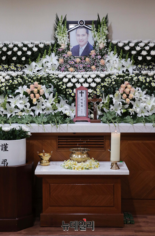 폐암 투병 끝에 별세한 배우 故 이일재의 빈소가 5일 오후 서울 서초구 서울성모병원 장례식장 7호실에 마련됐다. 발인은 7일 오전 8시 30분, 장지는 용인천주교 공원이다. (사진=공동취재단)