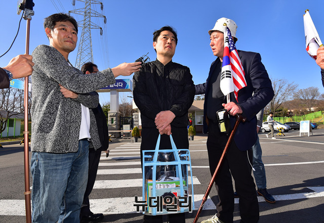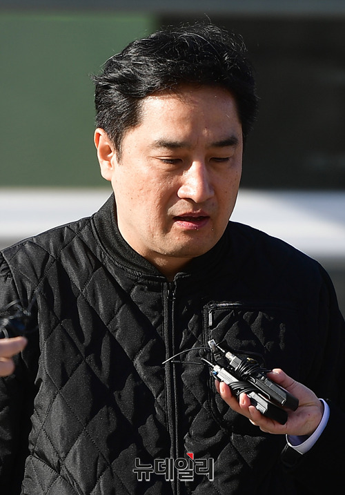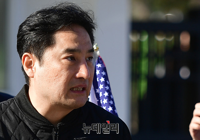 문서위조 혐의로 1심에서 법정구속된 강용석 변호사가 5일 오후 경기 의왕시 서울구치소를 나서며 취재진의 질문에 답하고 있다. 앞서 강 변호사는 서울 서초구 중앙지법에서 열린 2심 선고공판에서 무죄를 선고 받고 구속 163일 만에 석방됐다. 강 변호사는 지난해 10월 1심에서 징역 1년을 선고받고 법정구속된 바 있다. (경기 의왕=정상윤 기자)