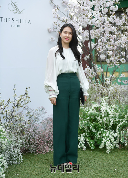 배우 손예진이 7일 오후 서울 중구 신라호텔에서 열린 가수 이정현의 결혼식에 포토월에 입장하고 있다.
