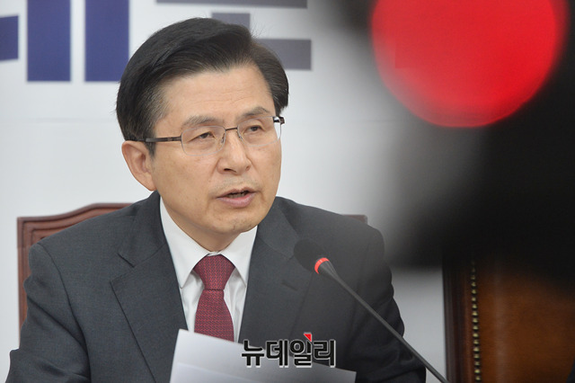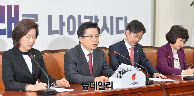 황교안 자유한국당 대표가 8일 오전 국회에서 열린 최고위원회의에서 모두발언을 하고 있다. 이날 황 대표는 박영선 중소벤처기업부 장관 후보자와 김연철 통일부 장관 후보자에 대한 자격을 지적하면서 문 대통령의 올바른 판단을 촉구했다.