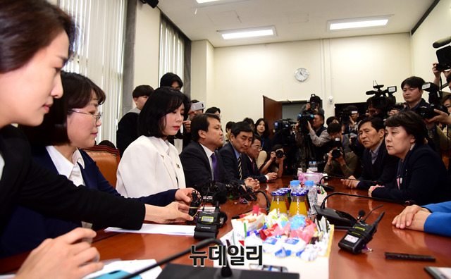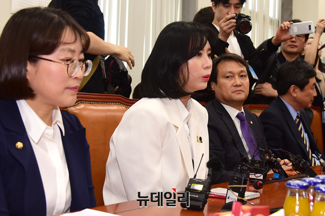 '故 장자연 사건' 목격자인 동료 배우 윤지오 씨가 8일 오전 국회 문화체육관광위원회 소위원회 회의실에서 의원 초청 간담회를 갖고 있다.