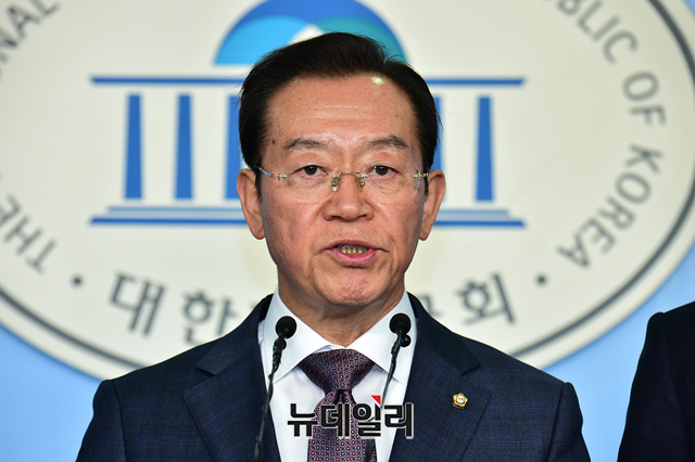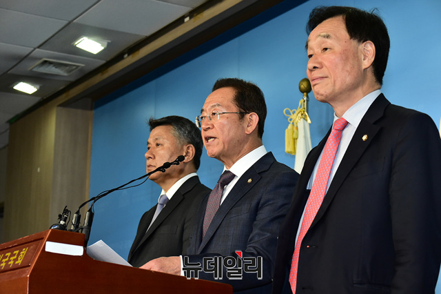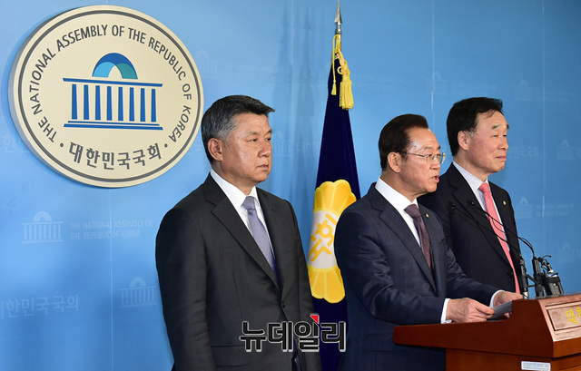 국회 산업통상자원중소벤처기업위 소속 자유한국당 간사인 이종배 의원이 8일 오후 국회 정론관에서 기자회견을 갖고 박영선 중소벤처기업부 장관 후보자 임명 반대 서명서를 낭독하고 있다.
