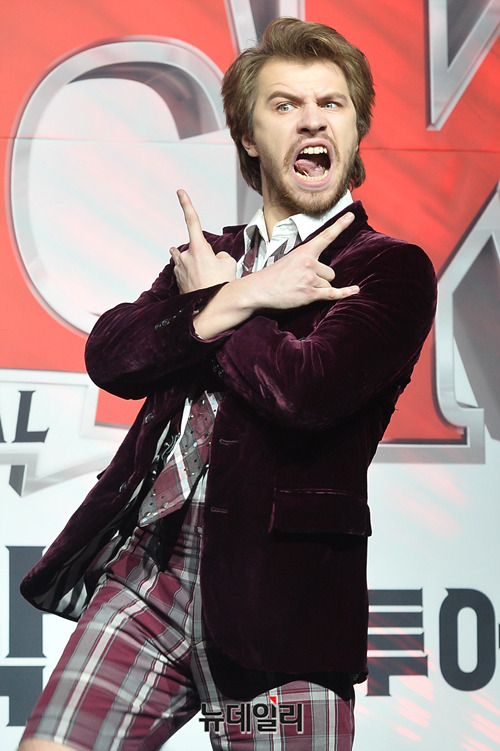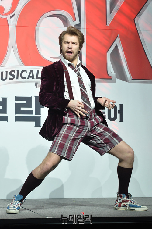 뮤지컬 '스쿨 오브 락(SCHOOL of ROCK)' 에서 주인공 '듀이'역을 맡은 코너 존 글룰리가 8일 오후 서울 중구 웨스틴조선호텔에서 열린 월드투어 프레스 컨퍼런스에 참석해 포토타임을 갖고 있다.