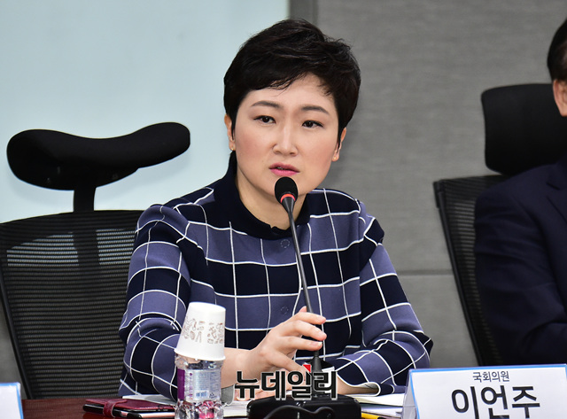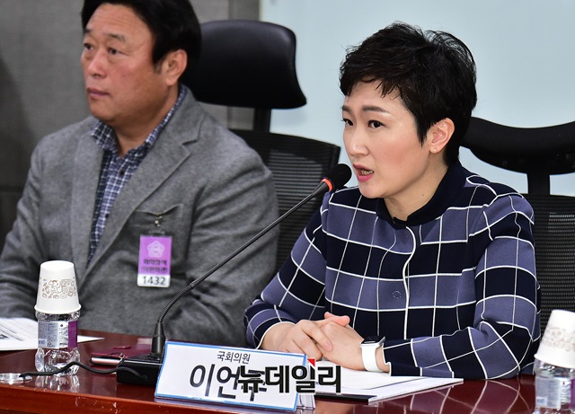 이언주 바른미래당 의원이 9일 오전 국회 의원회관에서 열린 '전통시장법 개정을 위한 토론회'에서 인사말을 하고 있다.