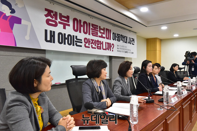 '아이돌보미 영유아폭행 사건, 내 아이는 안전합니까' 긴급토론회가 9일 오전 국회 의원회관에서 자유한국당 송희경·전희경 의원 주최로 열린고 있다.
