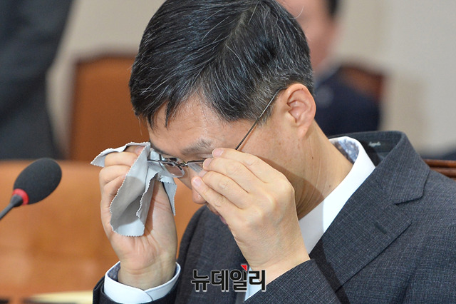 문형배 헌법재판관 후보자가 9일 오전 국회 법제사법위원회 전체회의에서 열린 인사청문회에 출석해 안경을 고쳐 쓰고 있다.