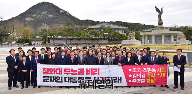 [포토] 청와대 앞 찾은 나경원, 무능과 비리 규탄