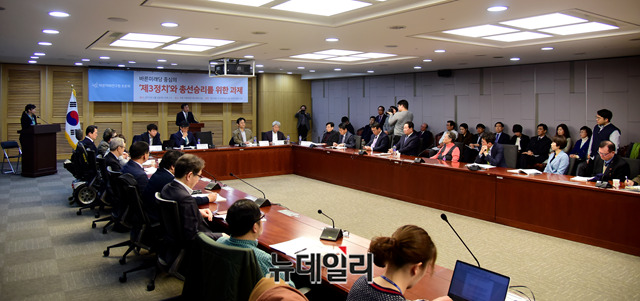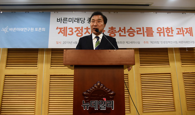 손학규 바른미래당 대표가 9일 오후 국회 의원회관에서 열린 바른미래당 중심의 '제3정치'와 총선 승리를 위한 과제 토론회에서 인사말을 하고 있다.