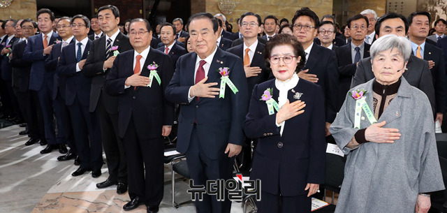 [포토] 임시의정원 100주년 기념식서 국민의례하는 문희상