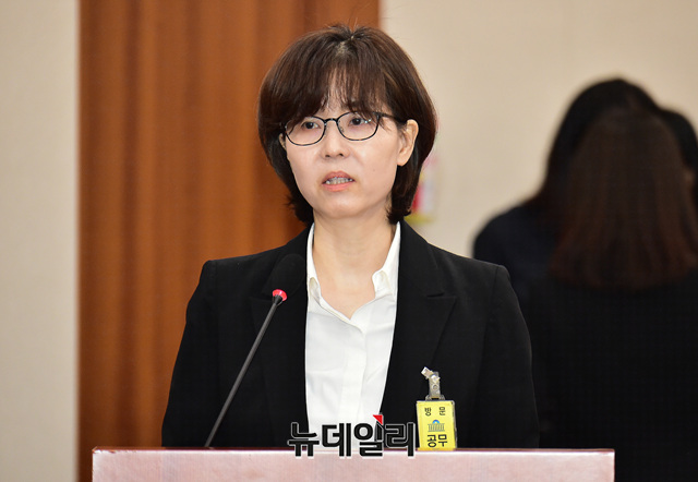 이미선 헌법재판관 후보자가 10일 오전 국회 법제사법위원회에서 열린 인사청문회에서 출석해 모두발언을 하고 있다.