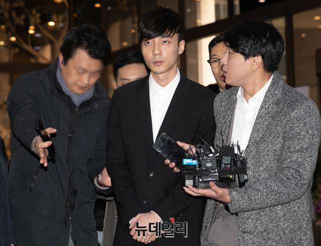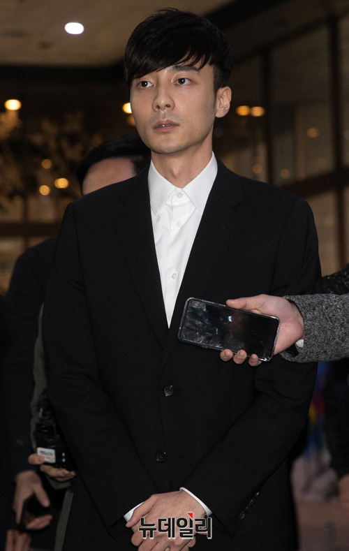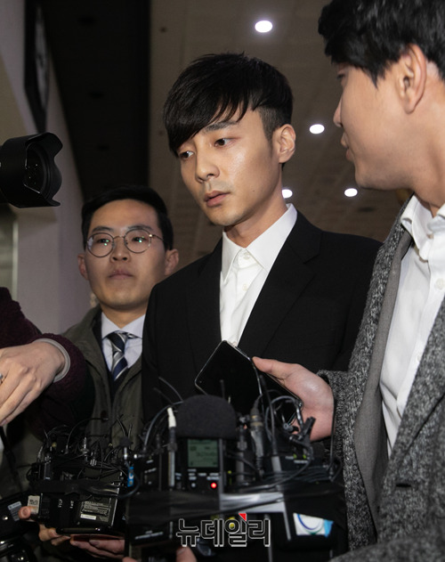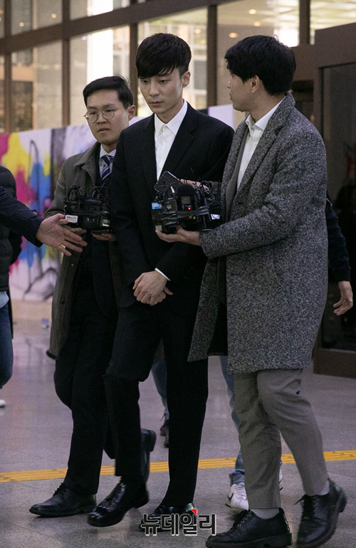 가수 로이킴이 10일 오후 서울 종로구 서울지방경찰청에 피의자 신분으로 출석하고 있다. 로이킴은 가수 정준영 등이 포함된 단체 대화방에 음란물을 올린 혐의를 받고 있다.