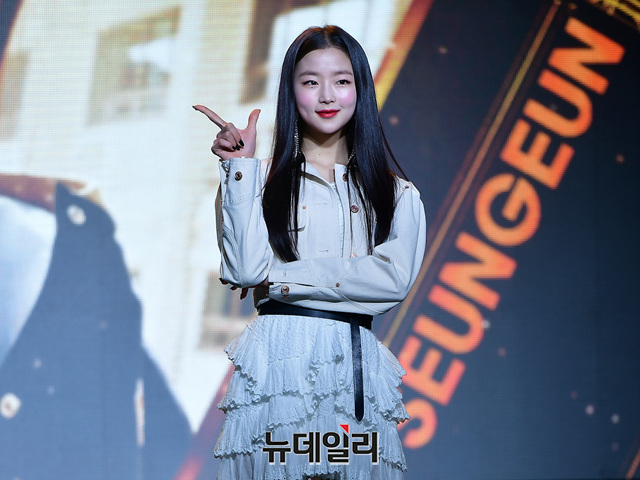 5인조 걸그룹 '밴디트(BVNDIT)' 멤버 승은이 10일 오후 서울 마포구 무브홀에서 열린 1번째 미니앨범 '밴디트, 비 앰비셔스!' 쇼케이스에서 포토타임을 갖고 있다.