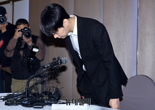 [포토] 기자회견 참석해 고개숙여 인사하는 박유천