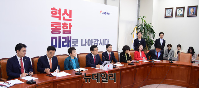 황교안 자유한국당 대표가 11일 오전 국회에서 열린 최고위원회의에서 모두발언을 하고 있다.