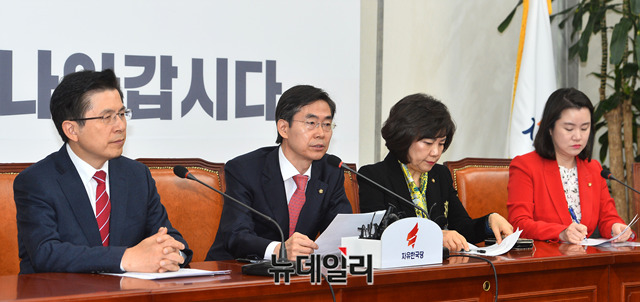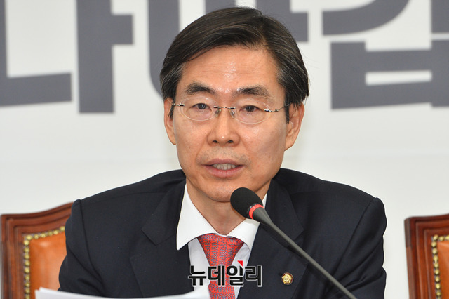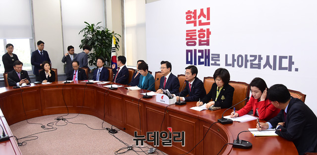 조경태 자유한국당 최고위원이 11일 오전 국회에서 열린 최고위원회의에서 모두발언을 하고 있다.