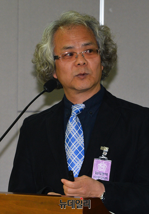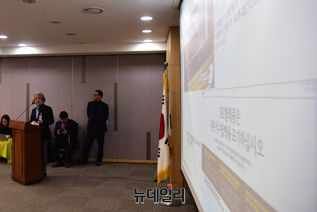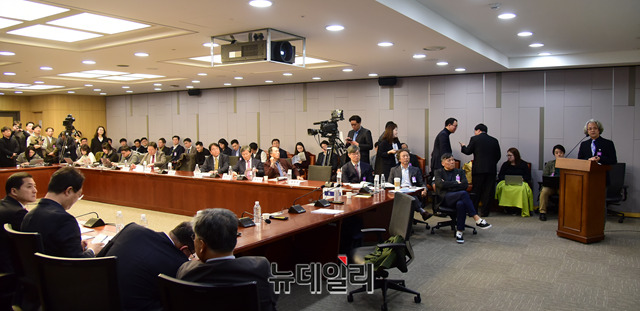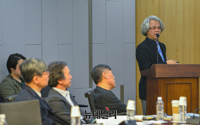 이상기 부경대학교 교수가 11일 오전 국회 의원회관에서 열린 '유료방송 M&A 어떻게 볼 것인가?' 정책토론회에서 발제하고 있다.