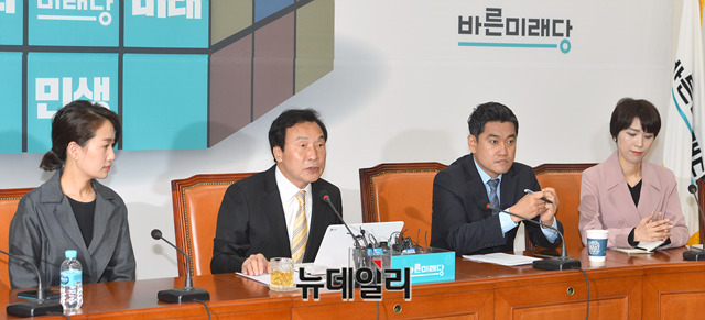 손학규 바른미래당 대표가 12일 오전 국회에서 외교안보 현안 관련 기자간담회를 갖고 있다.