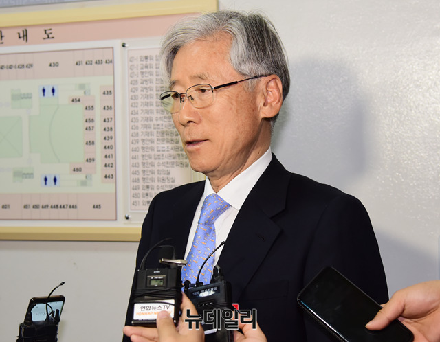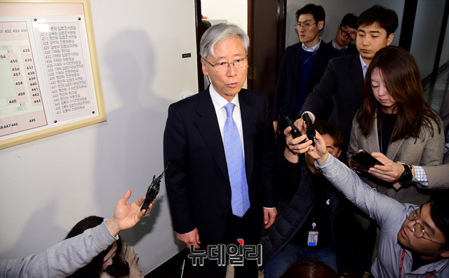 여상규 국회 법제사법위원장이 12일 오전 국회에서 열린 국회 법사위 전체회의에 앞서 더불어민주당의 불참에 대해 발언하고 있다. 이날 법사위에서는 문형배·이미선 후보자 인사청문 경과보고서 채택 여부를 논의할 예정이었으나 더불어민주당 전원 불참으로 인해 파행을 겪고 있다.