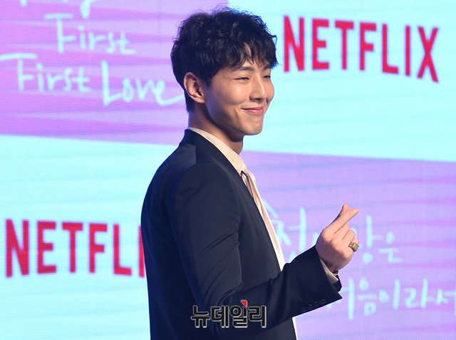 배우 지수가 12일 오전 서울 여의도 콘래드호텔에서 열린 넷플릭스 오리지널 시리즈 '첫사랑은 처음이라서' 제작발표회에 참석해 포토타임을 갖고 있다.