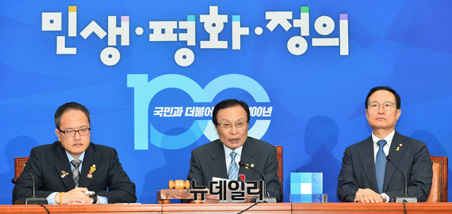 이해찬 더불어민주당 대표가 15일 오전 국회에서 열린 최고위원회의에서 모두발언을 하고 있다.