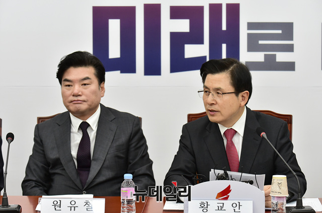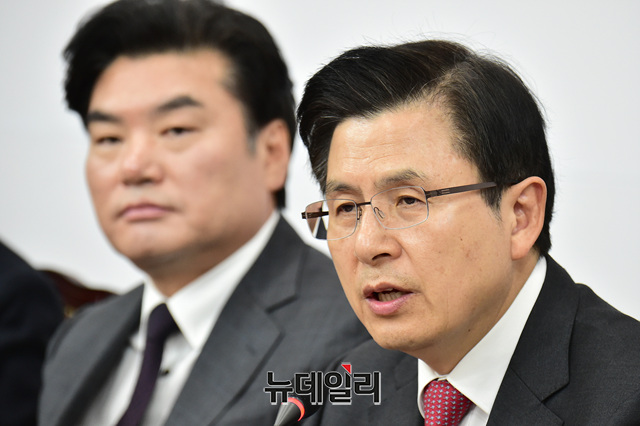 황교안 자유한국당 대표가 15일 국회에서 '한미정상회담 평가와 향후 대책'을 주제로 열린 북핵외교안보특별위원회회의에서 모두발언하고 있다.