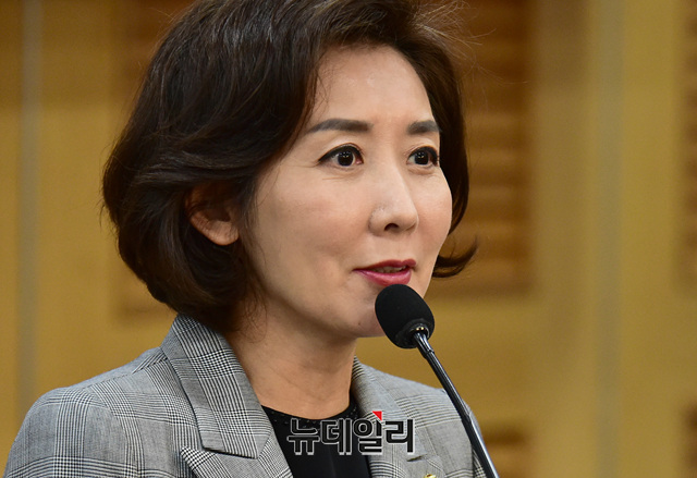 나경원 자유한국당 원내대표가 15일 오후 국회 의원화관에서 열린 '제7차 문재인-트럼프 회담 이후 이슈와 전망 토론회'에서 가 축사를 하고 있다.