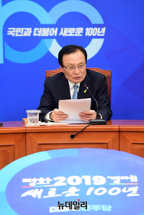 이해찬 더불어민주당 대표가 16일 오전 국회에서 제8차 기자간담회를 갖고, 현안에 대해 발언하고 있다.