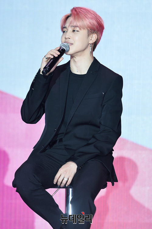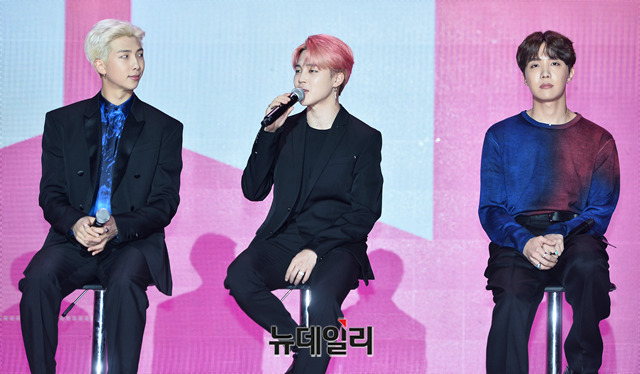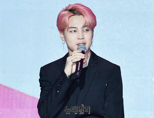 방탄소년단(BTS) 지민이 17일 오전 서울 중구 동대문디자인플라자 알림관에서 열린 새 앨범 발매기념 기자간담회 'MAP OF THE SOUL : PERSONA(맵 오브 더 소울 : 페르소나)'에서 인터뷰를 하고 있다. '맵 오브 더 소울 : 페르소나'는 12일 발매 이후 전세계 음반차트에서 매일 기록을 경신하고 있다.