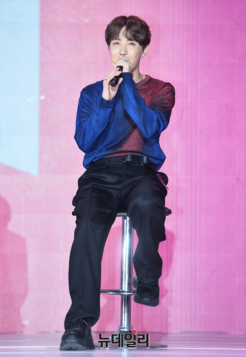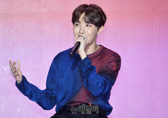 방탄소년단(BTS) 제이홉이 17일 오전 서울 중구 동대문디자인플라자 알림관에서 열린 새 앨범 발매기념 기자간담회 'MAP OF THE SOUL : PERSONA(맵 오브 더 소울 : 페르소나)'에서 인터뷰를 하고 있다. '맵 오브 더 소울 : 페르소나'는 12일 발매 이후 전세계 음반차트에서 매일 기록을 경신하고 있다.