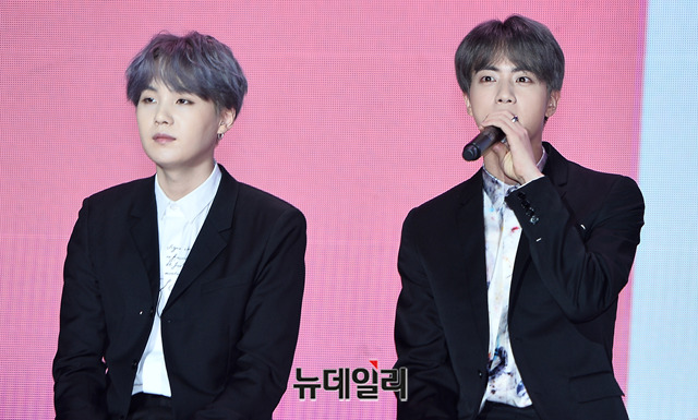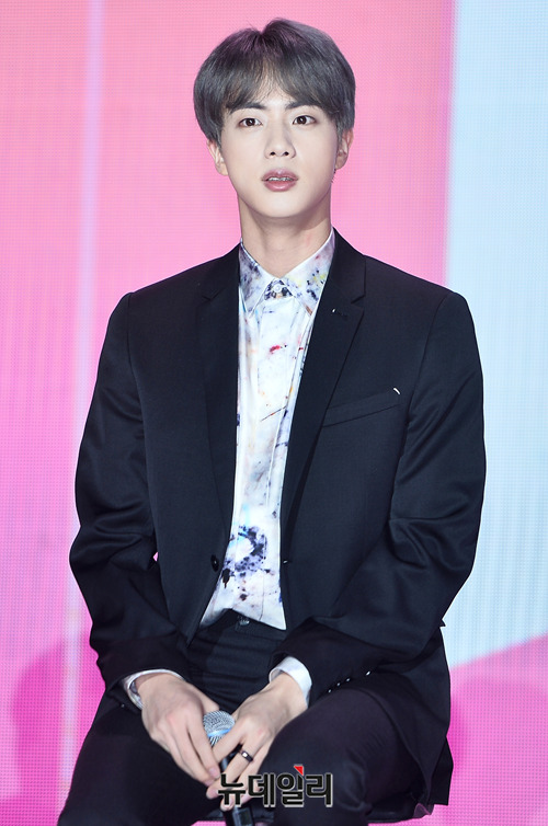 방탄소년단(BTS) 진이 17일 오전 서울 중구 동대문디자인플라자 알림관에서 열린 새 앨범 발매기념 기자간담회 'MAP OF THE SOUL : PERSONA(맵 오브 더 소울 : 페르소나)'에서 취재진의 질문에 답하고 있다. '맵 오브 더 소울 : 페르소나'는 12일 발매 이후 전세계 음반차트에서 매일 기록을 경신하고 있다.