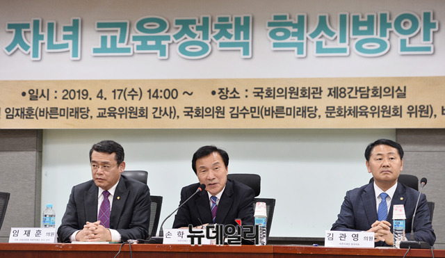 손학규 바른미래당 대표가 17일 국회 의원회관에서 열린 '탈북민 자녀 교육정책 혁신방안' 토론회에서 발언을 하고 있다.