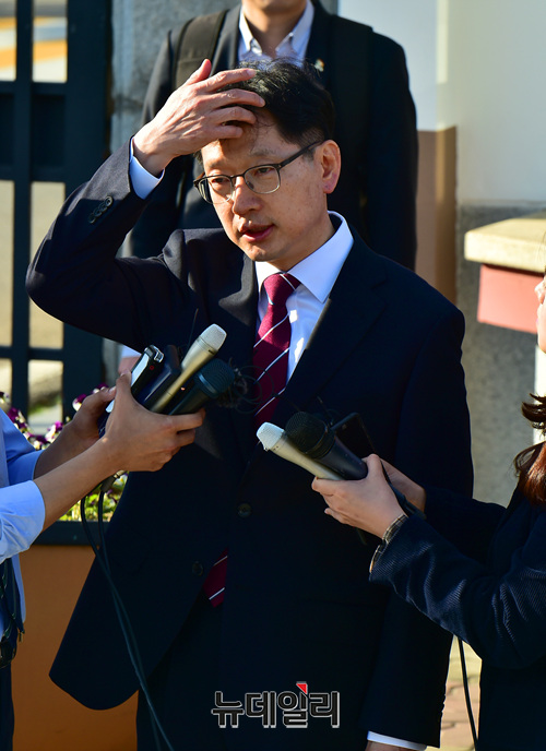 드루킹 일당에게 댓글조작을 지시한 혐의로 1심에서 법정 구속된 김경수 경남지사가 보석 허가가 난 17일 오후 경기 인왕시 서울구치소를 나서며 기자들의 질문에 답하고 있다. 앞서 김 지사는 1월 30일 1심 선고 후 구속됐다. 이날 재판부로 부터 보석이 허가됨에 따라 77일만에 불구속 상태로 2심 재판을 이어갈 수 있게 됐다. (경기 인왕=이종현 기자)