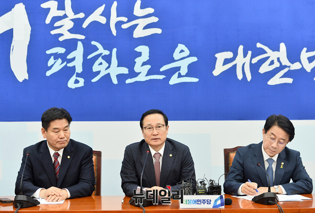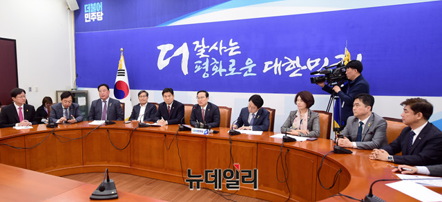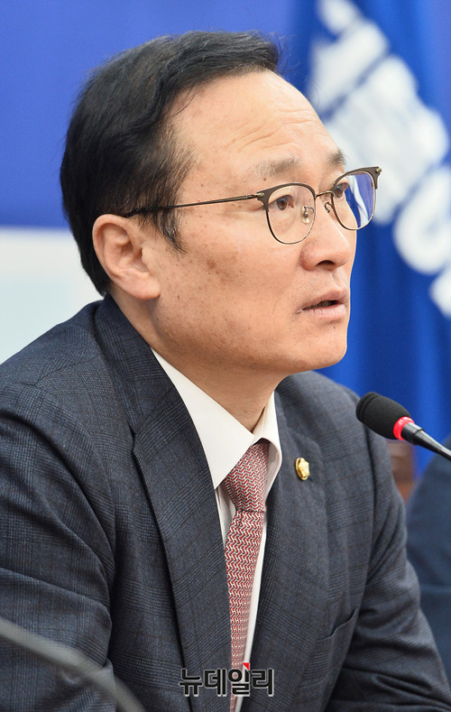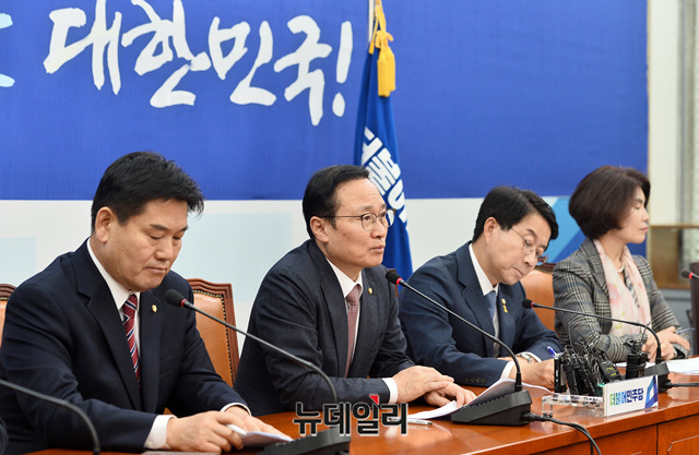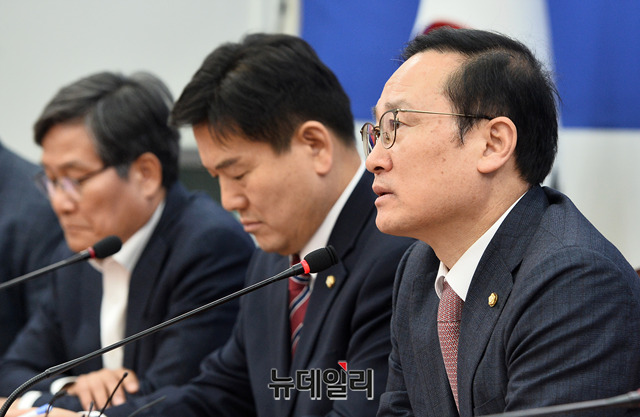 홍영표 더불어민주당 원내대표가 18일 오전 국회에서 열린 정책조정회의에서 모두발언을 하고 있다.