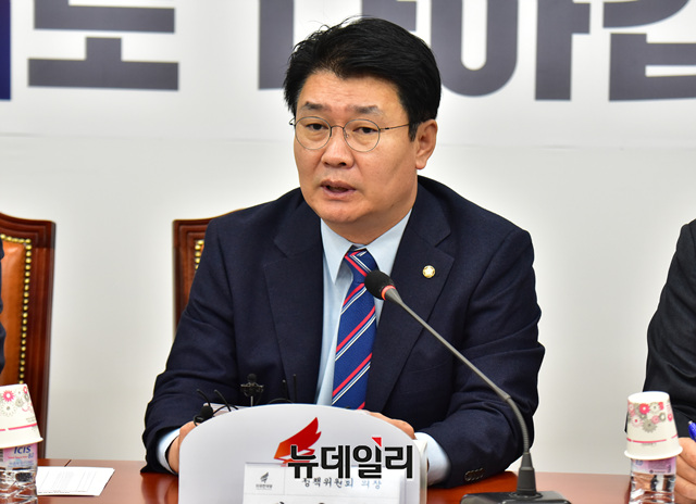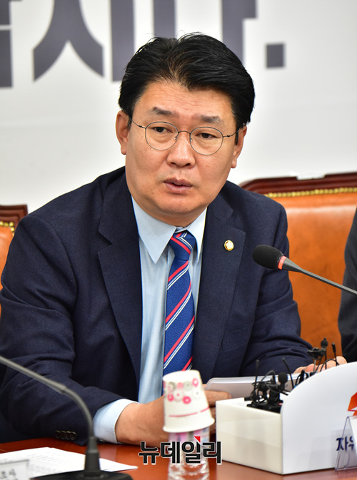 정용기 자유한국당 정책위의장이 18일 오전 국회에서 열린 대북제재위반조사특별위원회 전체회의에서 발언을 하고 있다.