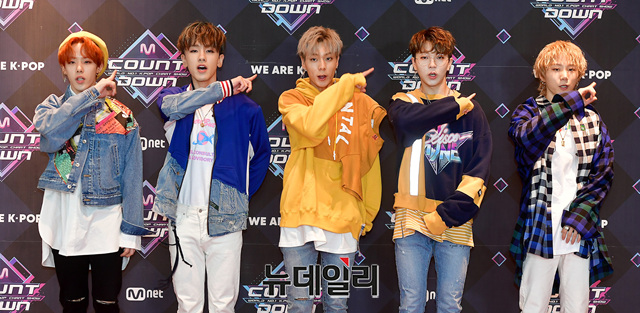 신인그룹 '원팀(1TEAM)'이 18일 오후 서울 마포구 CJ E&M에서 열린 엠카운트다운 생방송에 앞서 포토타임을 갖고 있다. 이날 엠카운트다운에는 모모랜드, 스트레이키즈, 원더나인, 에버글로우, 김성리 등의 가수가 출연한다.
