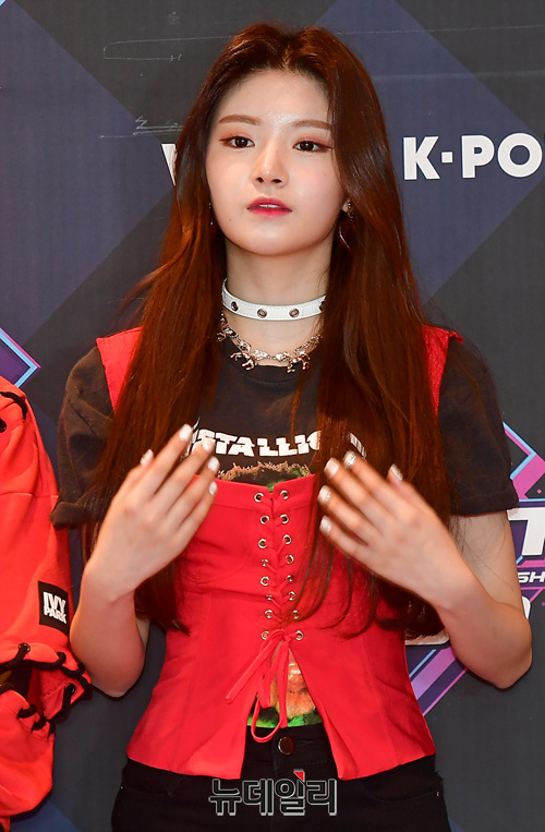 에버글로우 멤버 왕이런이 18일 오후 서울 마포구 CJ E&M에서 열린 엠카운트다운 생방송에 앞서 포토타임을 갖고 있다. 이날 엠카운트다운에는 모모랜드, 스트레이키즈, 원더나인, 에버글로우, 김성리 등의 가수가 출연한다.